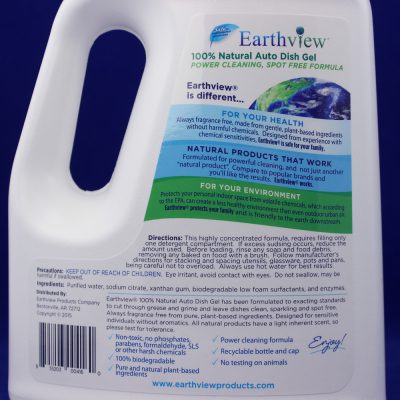 Earthview® Natural Fragrance Free Auto Dish Detergent Gel is a powerful cleaning formula made from safe and gentle plant-based ingredients, that work hard to cut through grease and dried on food residue on dishes, glasses and utensils. It is a safe and effective low-sudsing formula, leaving dishes sparkling clean and spot-free. Designed to be friendly to you and the environment without any harsh chemicals or phosphates, it is non-toxic, 100% biodegradable with a recyclable bottle and lid.